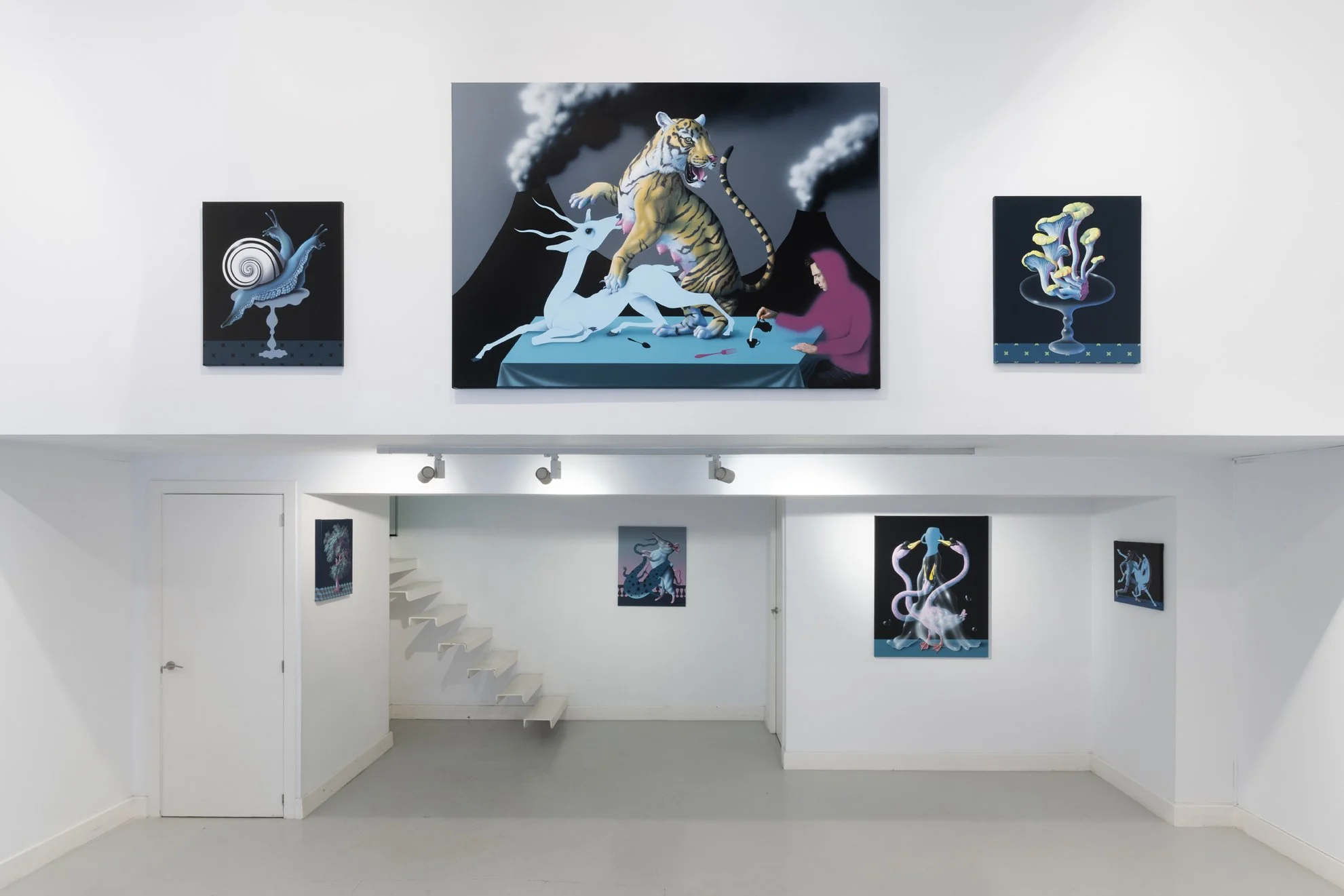 Beyond the absurdity lies reality in Orr’s works. Much like La Fontaine's fables, Orr uses animals and invented creatures to create a distance which allows opportunities for reflecting on our own human behaviour. Orr strives for playfulness in both theme and technique. Through carefully crafted compositions and smooth crystalline surfaces, an otherwise hard introspection becomes magically enticing. Orr’s paintings serve as reminders to stay in the present and always remember to play.